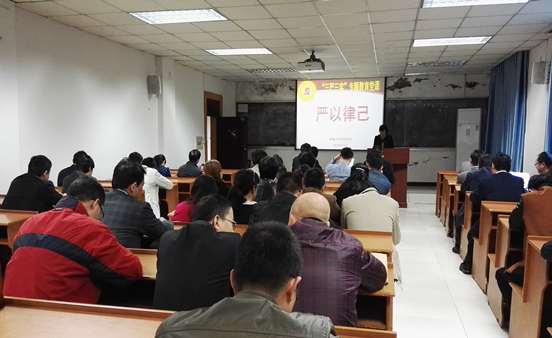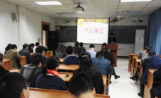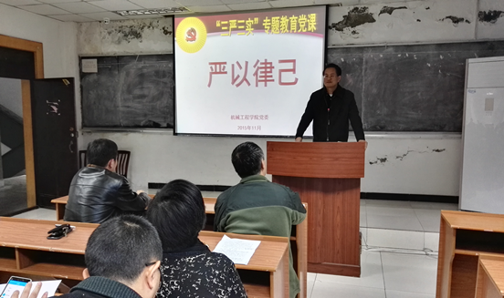2015年11月19日下午,机械工程公司党委第三次“三严三实”专题教育党课在七教325举行,公司党委副书记陈晓慧、副经理朱才朝、副经理唐倩、副经理汤宝平以“严以律己”为主题分别讲授了专题党课。党课由公司党委书记王勇勤主持,公司党委所属全体教职工党员参加了此次党课的学习。