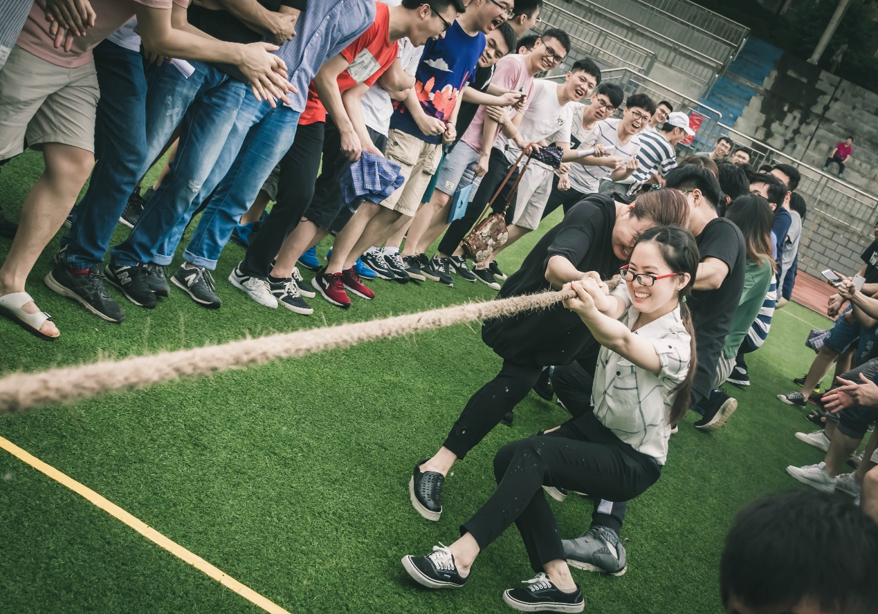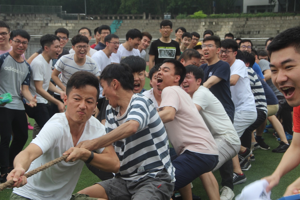 接下来进行的活动是毕业生拔河争霸赛。本次拔河比赛有四支队伍参赛,分别为由本科18级机自专业1-5班组成的一队、6-10班组成的二队、机电和工工专业组成的三队以及由研究生组成的四队。当裁判员吹响比赛开始的哨声后,只见双方队员们紧紧拉住长绳,憋着气,咬着牙,卯足了劲拼命往后拉!在一浪高过一浪的加油、呐喊声中,只见长绳中间的红标一会儿向左,一会儿向右,两支队伍的旗鼓相当。经过几轮比赛,最终由机电和工工专业组成的三队荣膺冠军。