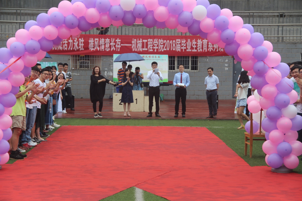 2018年6月20日14:00机械工程公司2018届毕业生教育系列活动在yh533388银河官网A区思群广场举行。机械工程公司经理林明锦教授、党委副书记樊玮、副经理罗远新教授、学办主任杨联星及毕业生辅导员出席了本次活动。参加本次活动的还有研究生毕业生、本科生毕业生以及来自其他年级的工作人员、志愿者们。本次活动的内容主要为毕业生走红毯、毕业生拔河争霸赛以及各类趣味游戏活动。在本次活动中,来自机械工程公司的2018届毕业生们展现出了他们独特的风采和强大的团队凝聚力。