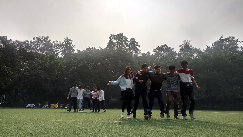 趣味运动会正式开始前,全体成员在主教楼前进行了合影留念,给活动定下了融洽的基调。随后,趣味运动会比赛环节正式拉开帷幕,此次运动会的活动内容有:踩气球、五人六足、跳大绳、丢沙包、乒乓球、羽毛球等比赛。