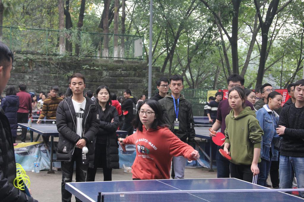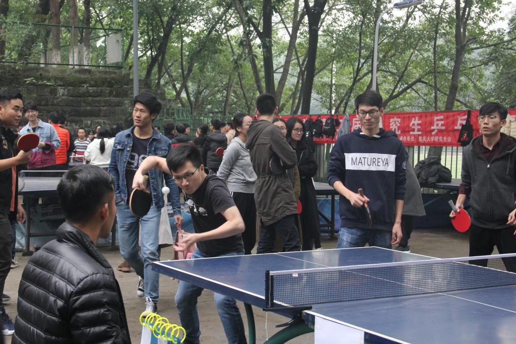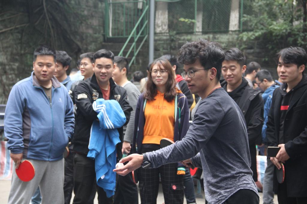 11月24日上午,yh533388银河官网A区室外乒乓球场内人声鼎沸,第二届研究生乒乓球赛即将打响,参赛选手早早的来到了比赛场地进行热身,很多热爱乒乓球的观众也特地前来观战。按照赛程安排,24日为小组循环积分赛,机械公司、材料公司、艺术公司、新闻公司和公共管理公司五支队伍相互之间进行对决,之后选出小组积分前两名晋级25日的淘汰赛。机械公司上午对阵材料公司,下午则与艺术公司、公共管理公司、新闻公司连战三场。四场比赛下来,机械公司以三胜一负的成绩打入八强。