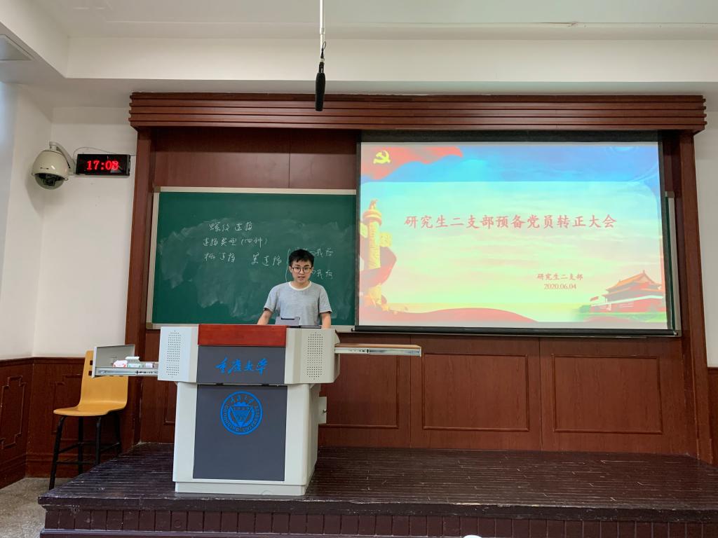 大会按照党员转正规程,分别由转正对象石昊同志、李彪同志和焦喜振同志向大家宣读了转正申请书,从转正申请中我们可以了解到,在预备党员的一年里面,三位同志在政治思想、学习、生活和工作等各方面都取得了巨大的进步:认真学习,专心科研,积极参加各项活动。随后,各位党员也对三位同志入学以来的表现进行了评议,经过党员同志的无记名投票,与支部书记郑晓辉同志宣读大会决议等多个环节,党支部全票通过了三位同志的转正申请,并表示了热烈的祝贺。最后,转正的三位同志表示成为正式党员后,要在学习、生活、工作等各方面更加严格要求自己,改正缺点、发扬优点,给同学们树立良好的模范带头作用形象,争做合格党员。会议圆满结束!