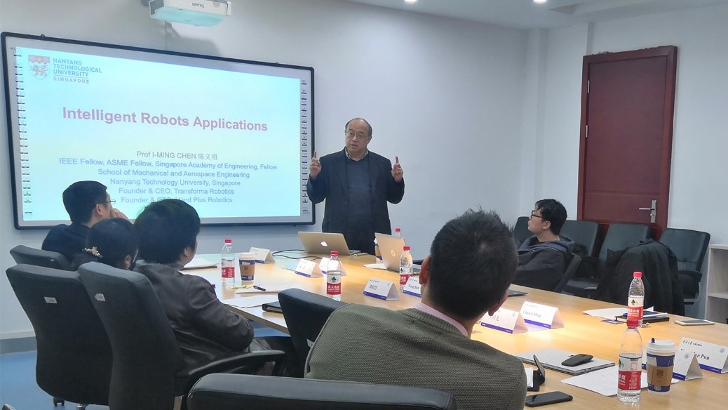 新方各位代表之后分别进行相关情况的介绍。Wan Man Pun经理介绍了南洋理工机械与宇航公司的基本情况,包括基础设施、学科、专业、教员、论文等,指出多名教授将研究成果投入了生产推向了市场;随后重点介绍了公司与各国际知名企业单位的合作,包括hp、dyson、SAAB、CAAS、LEONARDO、Rolls-Royce、SMRT等;最后重点分析了比较典型的研究成果,包括:昆虫控制、机械飞鸟、微型软体机器人、3D自由形打印、人形机器人、康复机器人、建筑机器人、微创手术机械手等。Chen I-Ming院士、Wang Han教授、Lum Guo Zhan教授与Lyu Chen教授就工业机器人在货物分拣与墙面喷涂、微型软体机器人磁控制、无人艇单目视觉、无人驾驶等具体问题分别进行了介绍。
