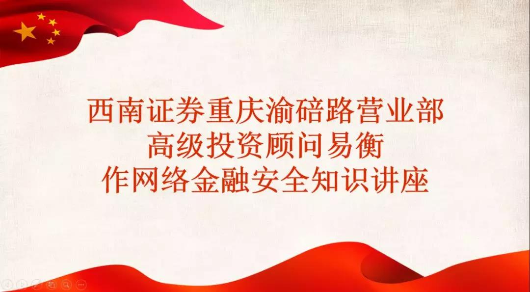 西南证券重庆渝碚路营业部高级投资顾问易衡,为本次网络金融安全知识讲座主讲人。