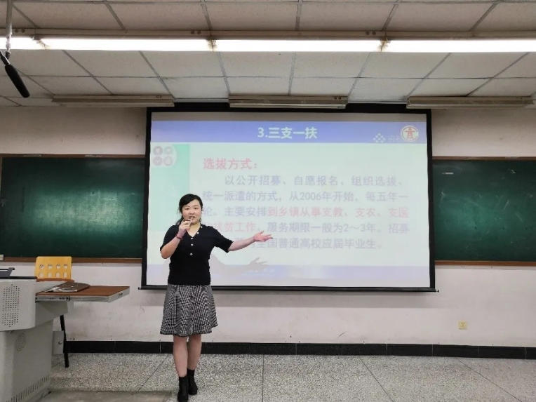 会议之中,王晓君老师针对就业方向做了详细解读。结合近期开展的国防军工单位组团招聘以及往届生选职情况,为与会同学做了相关指导,并对西部计划、三支一扶、参军入伍、科研助理等相关专项工作做了详细介绍。