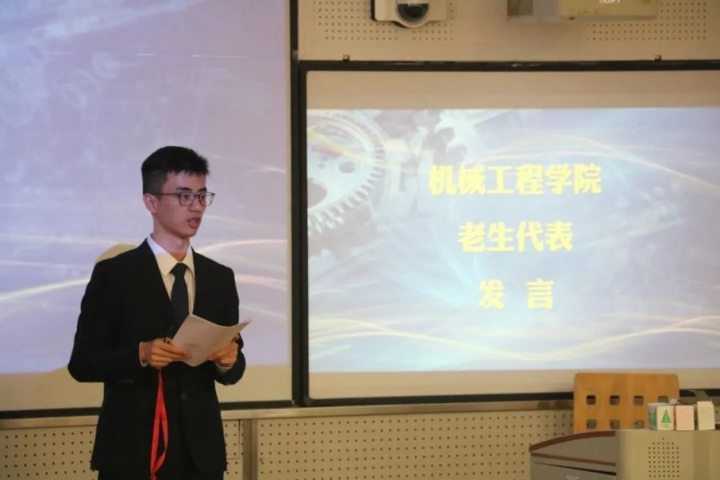 随后,老生代表殷光淼发表了演讲,为同学们未来大学四年的生活指明道路,他清晰地解释了老员工活与想象中的差异,并用亲身经历告诫同学们要砥砺奋进,莫忘初心。做一个有理想、有行动的搏击者,面对成就莫骄傲,面对失败莫气馁,努力丰富自己的老员工活,活出理想的人生。