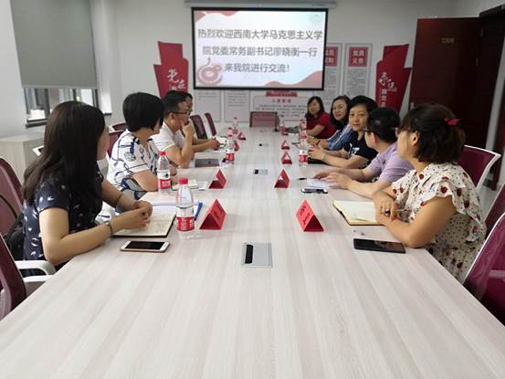 西南大学马克思主义公司正科级组织员黄岚、辅导员王珏、机械公司党委秘书及组织员一起参加了座谈,并现场交流经验分享。机械公司是教育部首批标杆院系创建单位,西南大学马克思主义公司是第二批标杆院系创建单位。通过交流,两院将进一步加强在党建方面的学习和合作,促进党建工作再上新台阶。