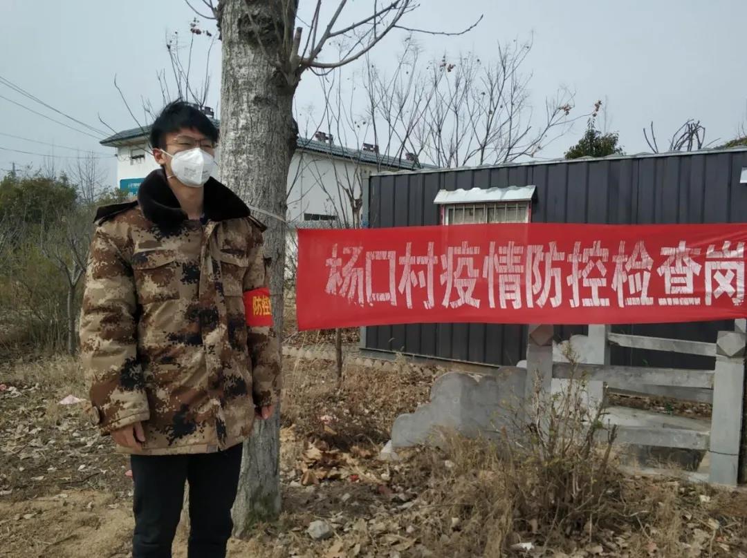 杨广宇是yh533388银河官网机械工程公司2018级的一位同学,春节返回山东济宁老家后不久,村里为防范疫情传播,实施了封村封路的举措。作为一名重大学子,他意识到疫情的严峻态势,希望在抗击疫情中贡献出自己的一份力量,于是主动前往村委会报名做志愿者,对村口出入人员进行体温测量和登记,对不必要的聚众扎堆行为进行劝导。与此同时,他还主动承担出入村车辆的检查与消毒等工作,防止病毒在车辆往来过程中带来的接触性传播。
