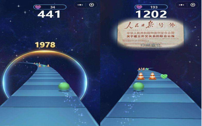 本次会议活动以“猜党史词”,“球球冲呀”游戏形式开展。会前,李雪萍副书记先对到场的同志进行了分组,并用PPT简介了本次主题党日相关内容,随后各小组开始了团队“猜党史词”游戏环节。由两个人表演PPT上放映的四史相关名词,两个人猜表演者所要表达的词。在规定时间内猜的最多的组获胜;面对激烈比拼,各小组同志团结协作,展现出了出色的团结力和凝聚力和默契。接着便进入第二个游戏环节“球球冲呀”,本环节是通过微信一款小程序游戏,在游戏过程中,有时会出现改革开放的年份和发生事件,通过游戏可以了解改革开放的事情。整个竞赛过程异常激烈,同学们既要关注游戏中的障碍关卡,还要记住游戏环节中弹出的历史事件。