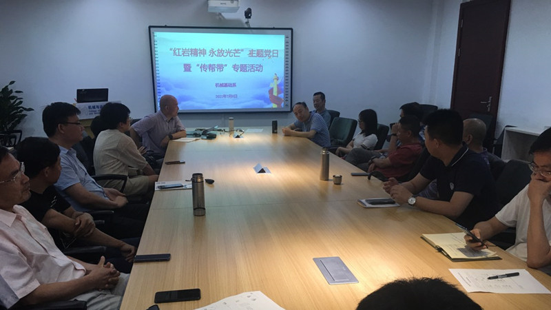 为庆祝中国共产党成立 100 周年,引导广大党员不忘初心、牢记使命,帮助青年教师进一步提高教学水平,2021年7月8日下午,yh533388银河基础系在职老师及部分退休老师在7338开展了“红岩精神 永放光芒”主题党日暨“传帮带”专题活动。