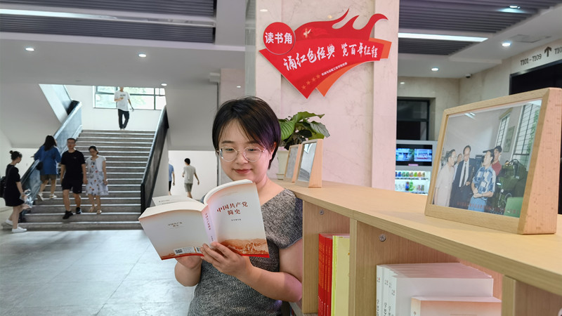 公司的“红色经典读书角”为师生提供了600余本红色经典读物,涵盖了党建党史、优秀党员传记、红色诗词散文等内容,打造了优雅、安静、整洁的阅读环境,营造了党史学习的浓厚氛围。