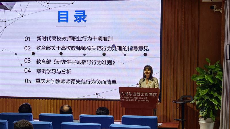 会上,公司党委副书记、纪委书记樊玮带领大家认真学习了《新时代高校教师职业行为十项准则》、《教育部关于高校教师师德失范行为处理的指导意见》、教育部《研究生导师指导行为准则》。她强调,全院教职工要坚持以习近平新时代中国特色社会主义思想为指导,模范践行社会主义核心价值观,落实立德树人根本任务,自觉加强师德修养,严格遵守师德规范,严以律己,为人师表,坚持以德立身、以德立学、以德施教、以德育德,努力成为有理想信念、有道德情操、有扎实学识、有仁爱之心的好老师。