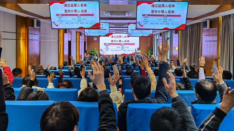 樊玮宣读了yh533388银河官网第十四次党代会代表候选人预备人选名单、《代表选举办法》以及监票人、计票人名单,全体党员代表举手表决通过。