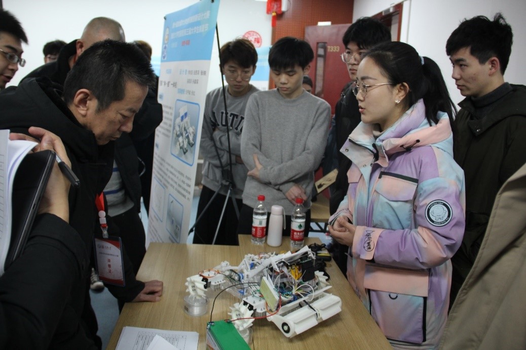 比赛分为现场问辩实物展示环节和答辩环节。第一环节参赛各组选手结合展板讲述、实物展示、动画视频、现场问辩等,介绍了作品的设计思路和背景、意义和前景等;第二环节参赛选手通过答辩的形式详细介绍作品的设计方案、创新性等。与会评委结合参赛作品的先进性、创新性、实用性,进行综合评价并给出修改建议。评委专家组对整场比赛进行了精彩点评,希望大家按照全国竞赛的参赛要求,不断打磨和完善优秀作品。最终28支队伍获奖,其中一等奖6项、二等奖11项、三等奖11项。