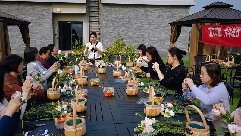 活动邀请了拥有多年插花经验的花艺老师,给大家讲授选花、裁剪、颜色搭配、造型等方面的插花技巧,还讲解了各种花所蕴含的花语和祝福。