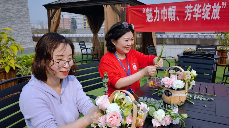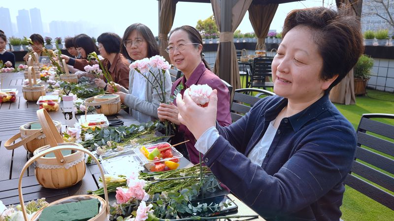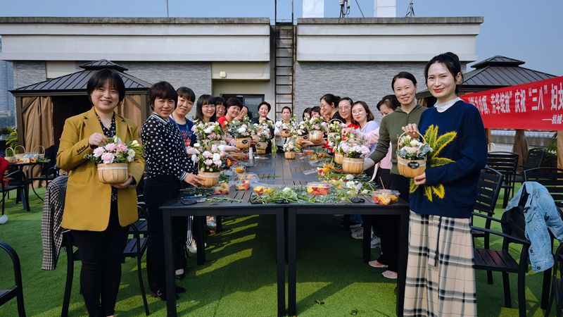 阳春三月,鸟语花香。在第112个国际妇女节到来之际,为激励全体女教职工积极投身新年度工作的热情,让女教职工在辛勤工作之余享受花样年华,感受插花艺术的魅力,2022年3月10日上午,yh533388银河在“职工之家”室外交流区举办了“魅力巾帼 芳华绽放”庆祝“三八”妇女节插花活动。