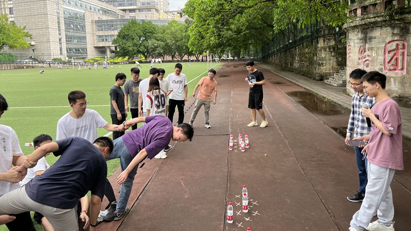 本次活动涉及团体活动、党史故事分享和党史知识竞赛三个部分。活动开始前,研究生十六支部书记刘富樯老师发表了讲话,表明此次活动是一个很好的户外交流途径,希望大家以活动为契机,增强对党史知识的学习和运用,同时增进两个公司之间的友谊。在随后的团体活动中,两个公司的同学通过抽签的方式分成4个小组。大家先后进行了校内标志性建筑打卡、移形换位和跳长绳等三个团队比赛活动。活动中,同学们合理分工,相互配合,共同出谋划策完成具有挑战性的目标。