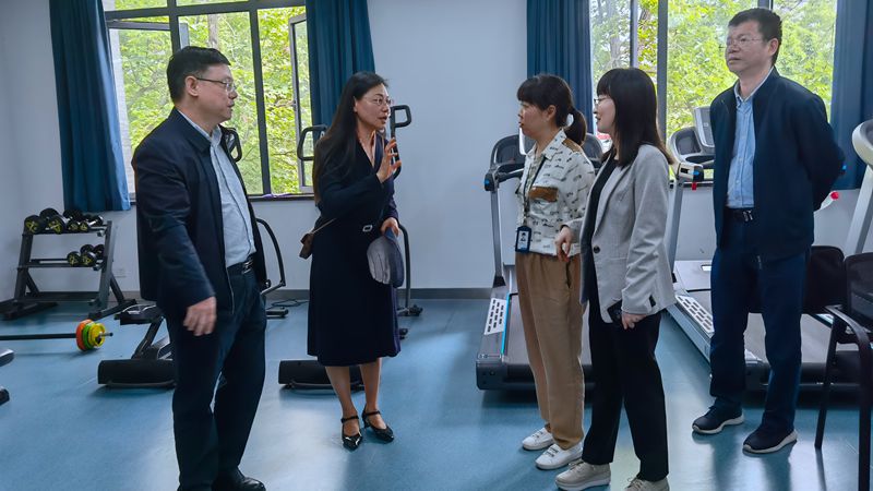 于今陪同张军一行参观了公司职工小家室外交流区、图书阅览区和健身区。