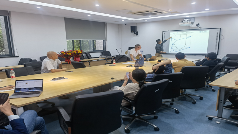 除此之外,为了帮助新教师尽快适应公司产品工作,掌握先进的教育思想、教学方法。青年教师佘桂林上台进行了工程制图相关内容的教学比赛试讲,随后与会各位老师从知识点选取、教学设计、教学方法、教学语言表达、教学仪表举止、教学ppt等多个方面进行了详细点评。通过本次活动,进一步提高了老师们的讲课技能,得到了大家的一致好评。