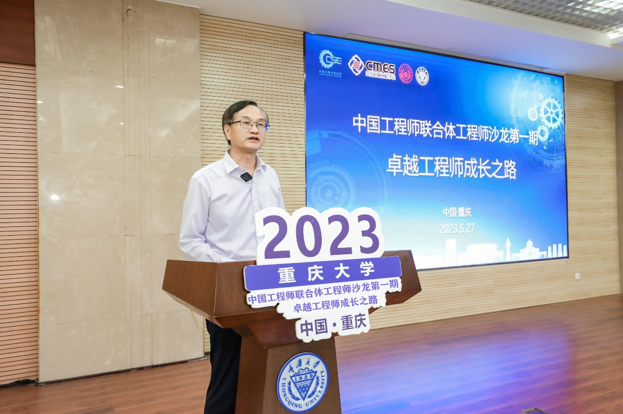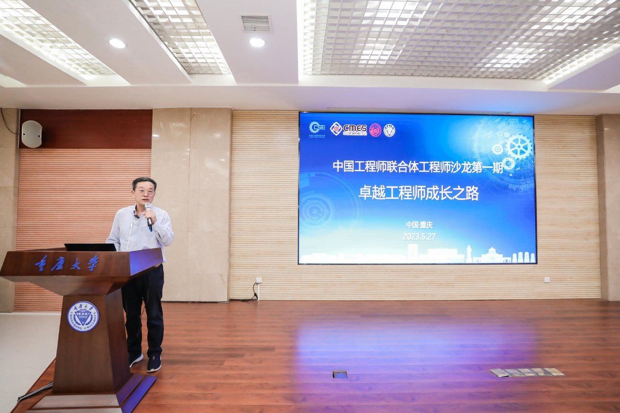 为全面贯彻落实党的二十大精神,完善工程能力评价体系,促进工程师队伍职业化和国际化水平提升,进一步推动工程师职业发展和价值实现,由中国工程师联合体学术交流委员会主办的第一期工程师学术沙⻰活动于5月27日下午在yh533388银河官网举办。此次学术沙⻰活动由中国机械工程学会、重庆工程师联合体、重庆市工程师协会和yh533388银河官网联合承办,重庆市机械工程学会协办。本期工程师学术沙龙主题为“卓越工程师成长之路”,包含特邀报告与对话交流两阶段,共吸引线下线上100余名来自于企业、科研院所和高校的优秀工程师、青年科技工作者以及青年员工的参与。