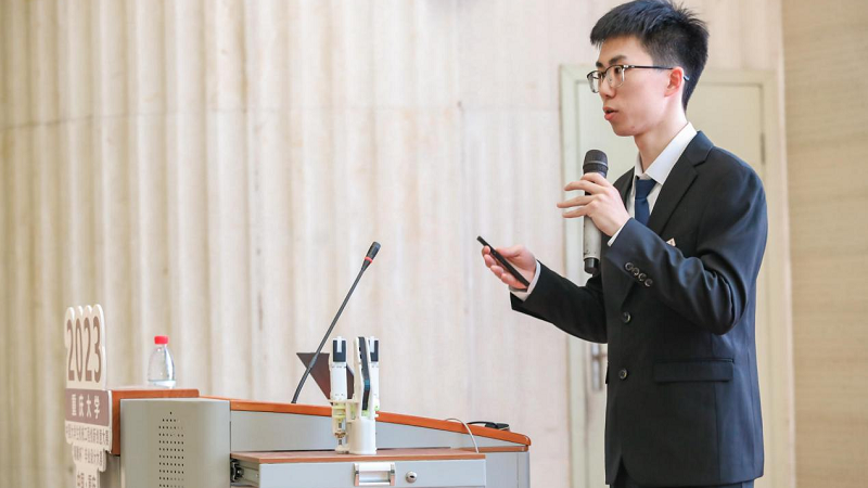 参赛员工代表、燕山大学机械工程公司邓济阳同学进行了宣誓。他表示,各参赛选手在这耀眼的舞台上将以最饱满的热情,最积极的态度,提交好大学阶段最后一张答卷,为我国建设社会主义现代化强国的道路添砖加瓦。