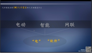 随后,时傲兵老师向同学们介绍了汽车制造业的发展趋势和主流赛道。时老师提到目前全球汽车产业正面临百年未有之大变局。对于汽车行业,是“5G”和“储能”两大生产力技术的交汇点。汽车制造业的发展趋势和主流赛道就是“电动”、“储能”和“网联”。