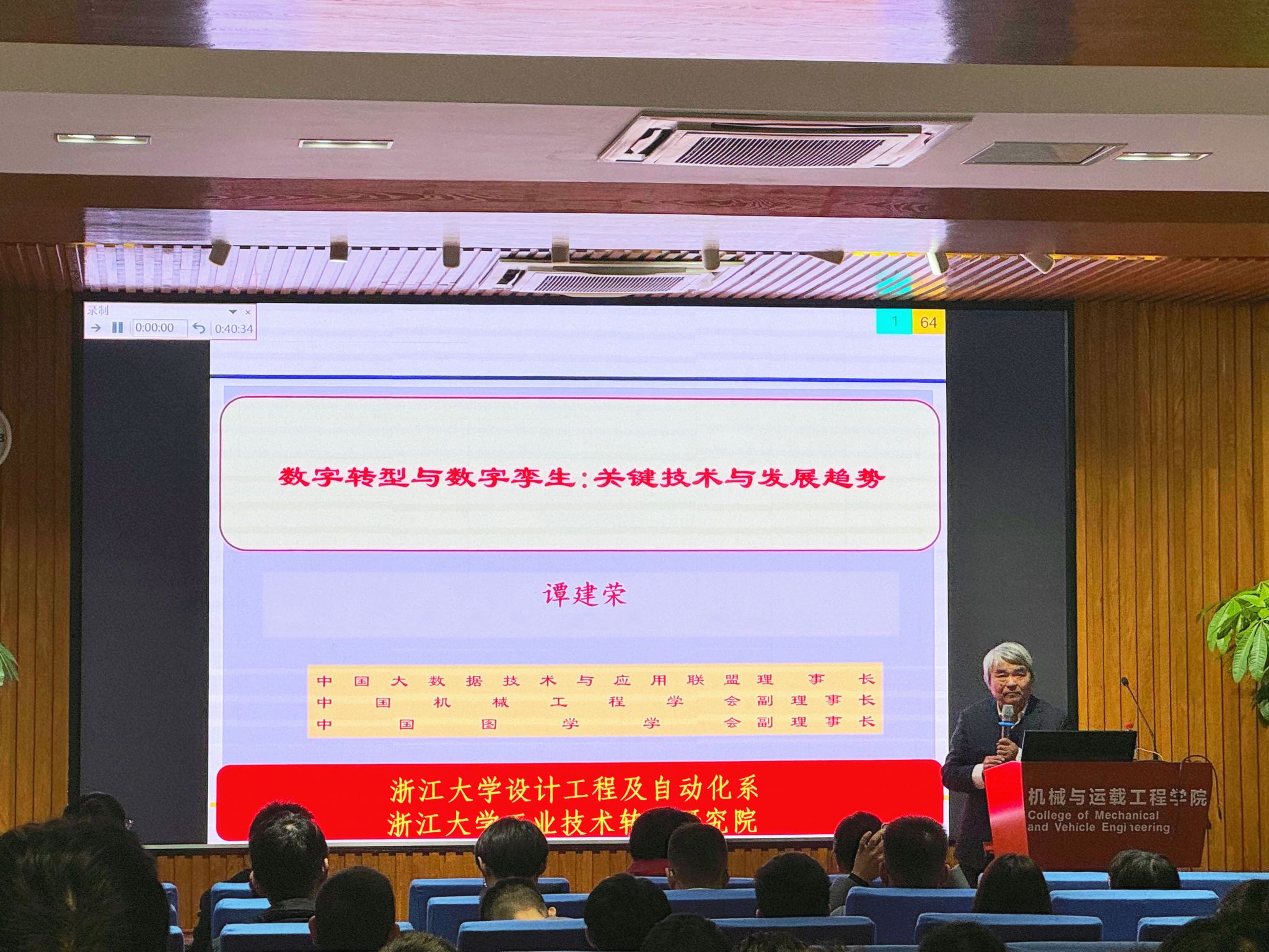 2023年12月17日下午,中国工程院院士,浙江大学求是特聘教授、博士生导师谭建荣院士受邀访问yh533388银河,与公司领导和教师代表座谈,并为师生作了题为“数字转型与数字孪生:关键技术与发展趋势”的学术讲座。讲座由公司王旭教授主持,公司党委书记陈晓慧、经济与工商管理公司赵泉午教授及100余名师生参加。